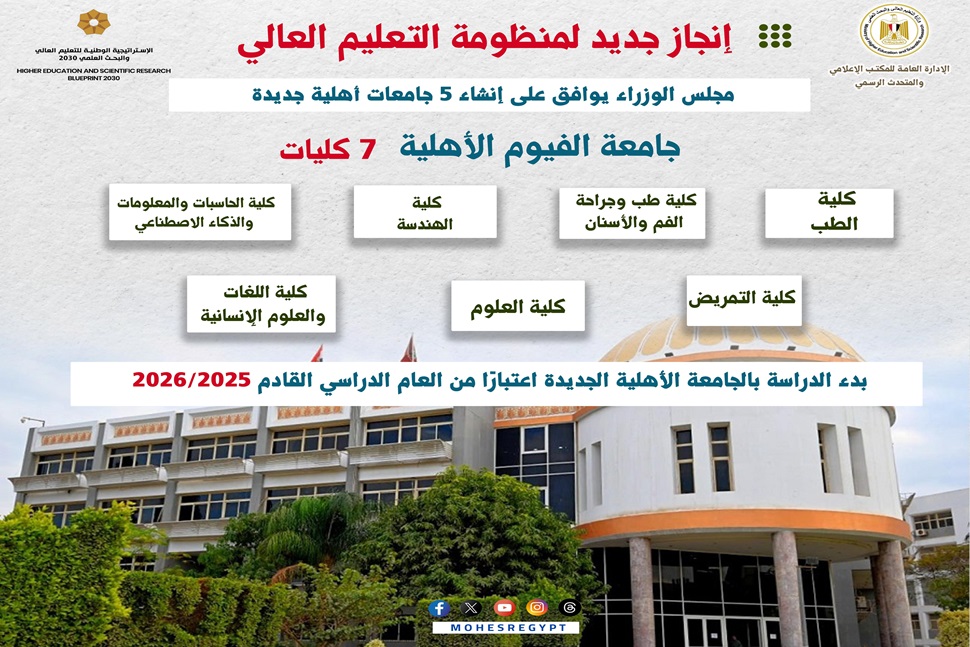 استمرار نشر سلسلة "الجامعات الأهلية الجديدة" والتعريف بجامعة الفيوم الأهلية